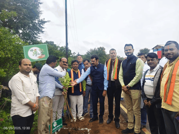 जगदलपुर, 25 अगस्त 2025/ एक पेड़ मां के नाम के तहत आज शहर के पंडित सुंदरलाल शर्मा वार्ड तथा करकापाल मार्ग में सांसद श्री महेश कश्यप एवं विधायक श्री किरण देव के द्वारा पौधारोपण किया गया। एक पेड़ मां के नाम के तहत करकापाल सड़क के दोनों तरफ 800 पौधे व पंडित सुंदरलाल शर्मा वार्ड में 50 पौधे का रोपण किया जा रहा है।