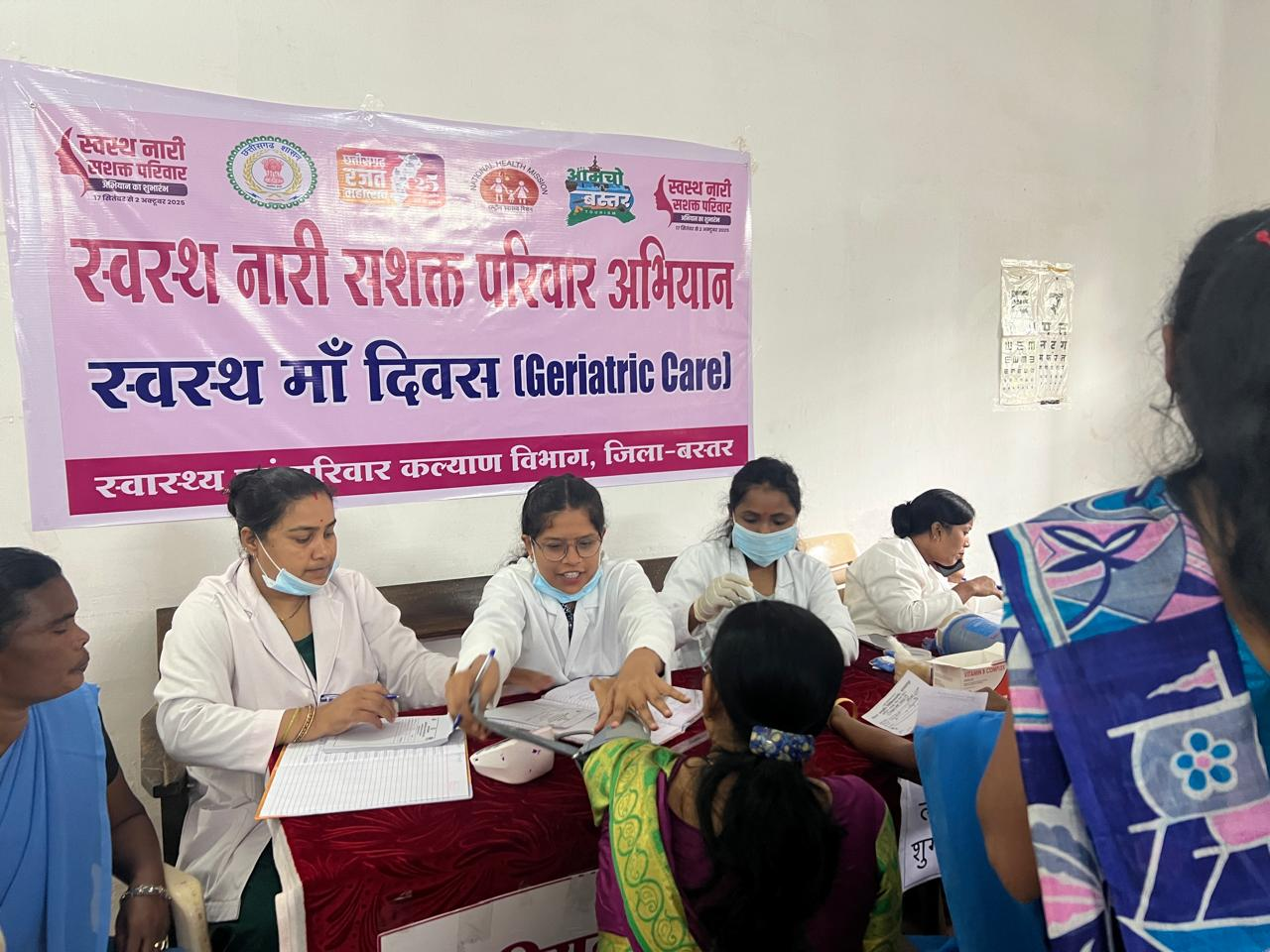 जगदलपुर, 29 सितम्बर 2025/ स्वस्थ नारी सशक्त परिवार अभियान और स्वस्थ मां दिवस के अवसर पर बुधवार को जगदलपुर स्थित कलेक्टोरेट परिसर में स्वास्थ्य एवं परिवार कल्याण विभाग द्वारा एक विशेष स्वास्थ्य जांच शिविर का आयोजन किया गया। महिलाओं को स्वास्थ्य के प्रति जागरूक करने और उन्हें बेहतर स्वास्थ्य सेवाएँ प्रदान करने के उद्देश्य से यह शिविर आयोजित किया गया, जिसमें बड़ी संख्या में महिलाओं ने उत्साहपूर्वक भाग लिया। अभियान की थीम स्वस्थ नारी सशक्त परिवार रखी गई है, जो इस बात पर जोर देती है कि यदि महिलाएँ स्वस्थ होंगी, तभी परिवार और समाज सशक्त हो सकेगा।