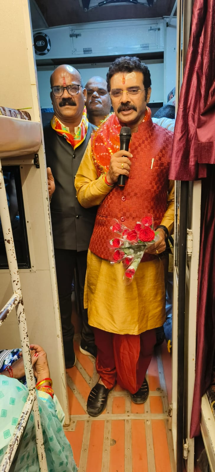 जगदलपुर 01 अक्टूबर 2025/ छत्तीसगढ़ शासन द्वारा संचालित श्रीरामलला दर्शन (अयोध्या धाम) योजना के तहत 30 सितंबर की शाम को बस्तर जिले के कुल 87 तीर्थ यात्रियों को टाउन हॉल के सामने बस से रवाना किया गया। सांसद श्री महेश कश्यप, नगर निगम महापौर श्री संजय पांडे, श्री वेद प्रकाश पांडे, रामाश्रय सिंह ने श्रीरामलला दर्शन योजना के यात्रियों को पुष्प भेंट कर सुखद यात्रा की शुभकामनाएं दी। यात्रा के प्रारम्भ होने से पूर्व सभी यात्रियों का स्वास्थ्य परीक्षण भी किया गया। जिले में श्रीरामलला दर्शन योजना समिति के सदस्य श्री रामाश्रय सिंह एवं अन्य अधिकारियों के मार्गदर्शन एवं नेतृत्व में हरी झंड़ी दिखाकर रवाना किया गया है। जिले से विगत वर्ष से अब तक 873 तीर्थ यात्रियों को अयोध्या धाम यात्रा से लाभान्वित किया जा चुका है। इस अवसर पर जिला पंचायत अति. मुख्य कार्यपालन अधिकारी एवं नोडल अधिकारी श्री बीरेंद्र बहादुर सहित जिला पंचायत कार्यालय के अन्य अधिकारी-कर्मचारी उपस्थित थे।